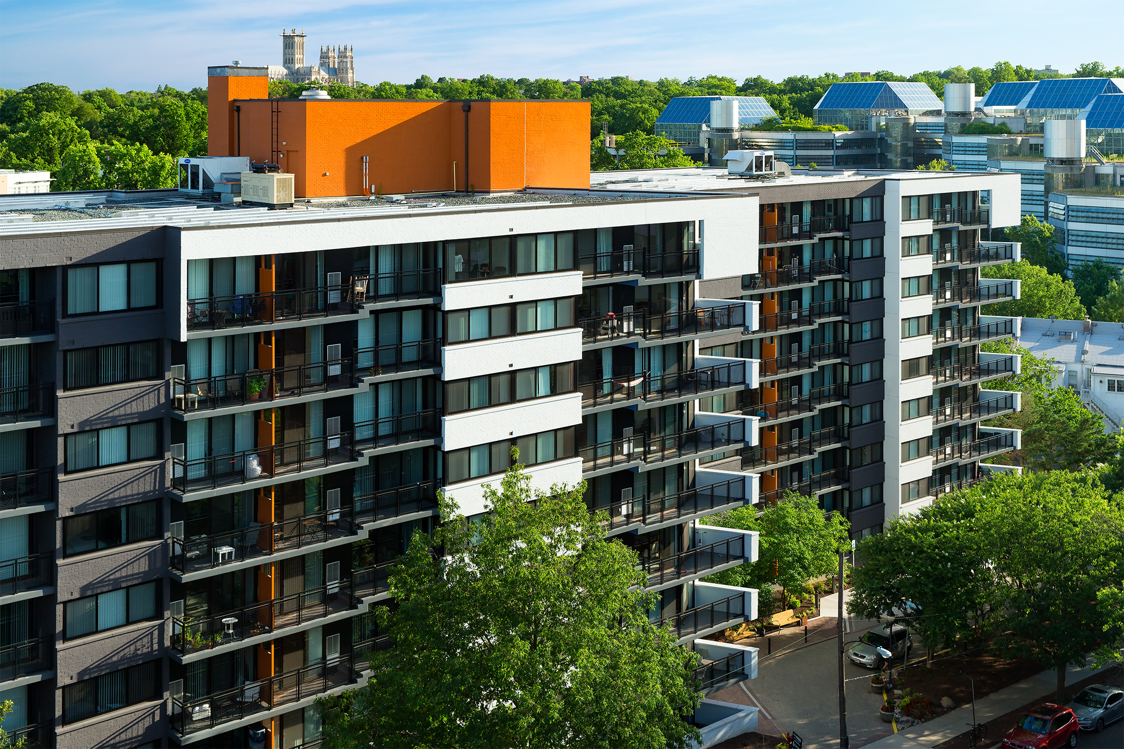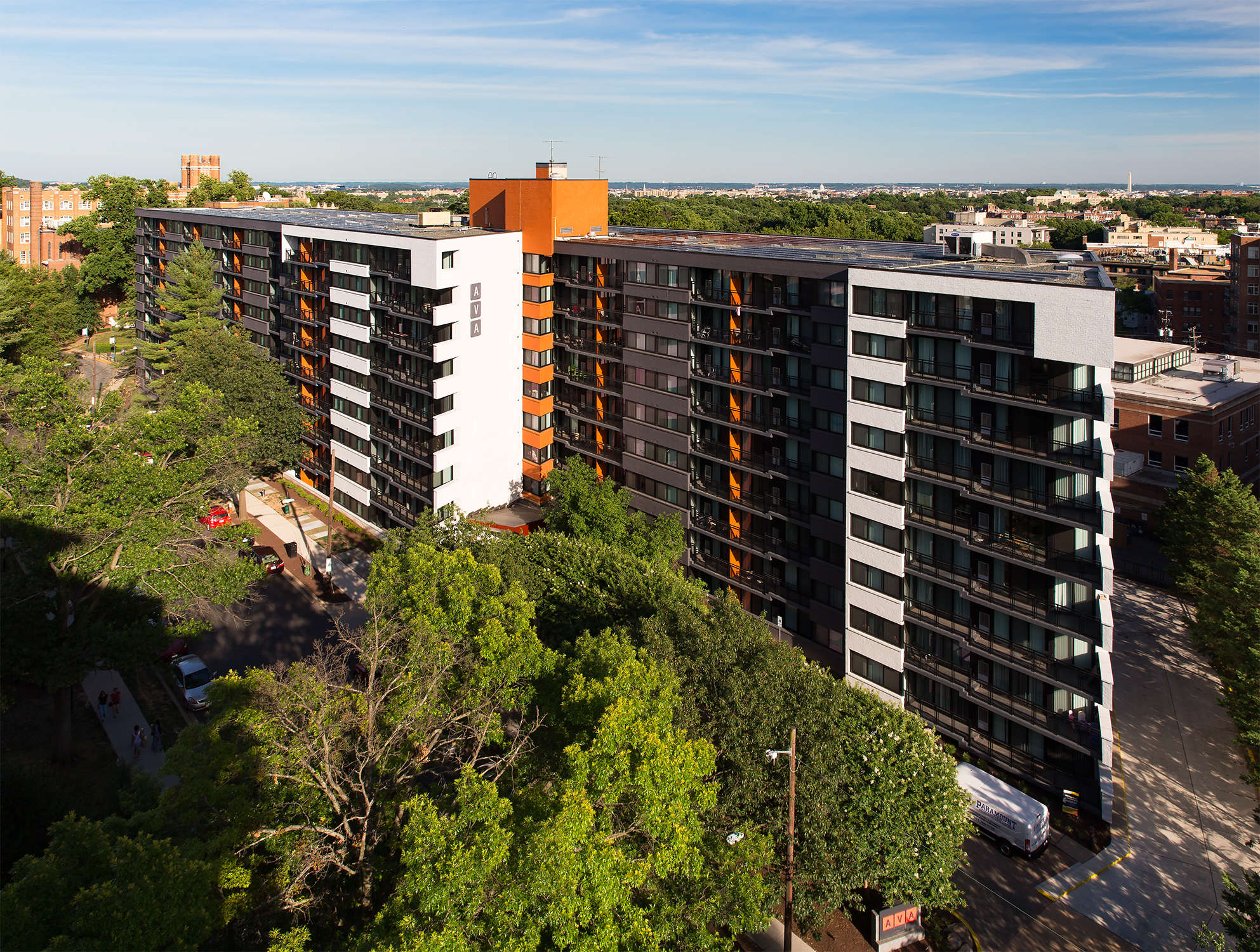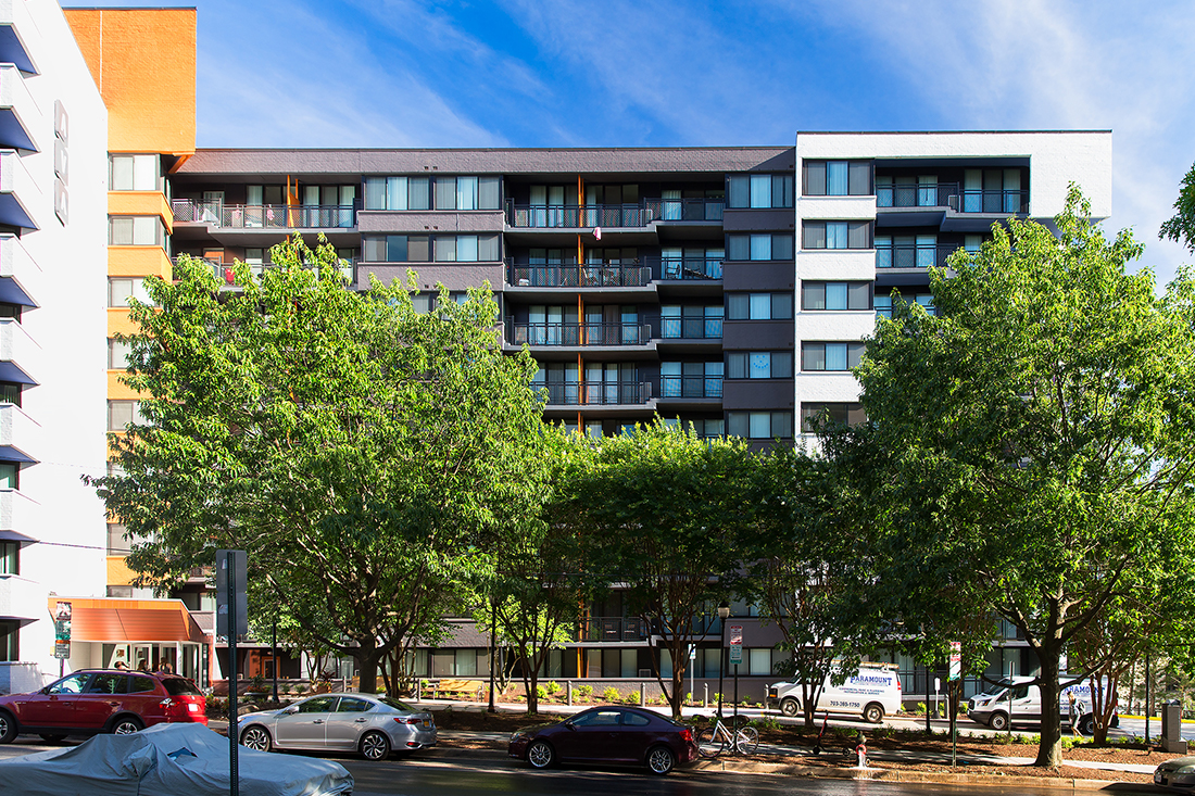 This luxury high rise complex features resort-style amenities and includes a multitude of windows and balcony doors throughout the property. Located in the heart of the Van Ness neighborhood at the entrance to Rock Creek near the UDC metro, this project was certainly a challenge for logistics and production. HiRISE Windows met this challenge completing this 9 story renovation ahead of the allotted project time. For the systematic renovation of AVA Van Ness, HiRISE replaced all windows using Graham Architectural products and sliding balcony doors using Sunview Doors.