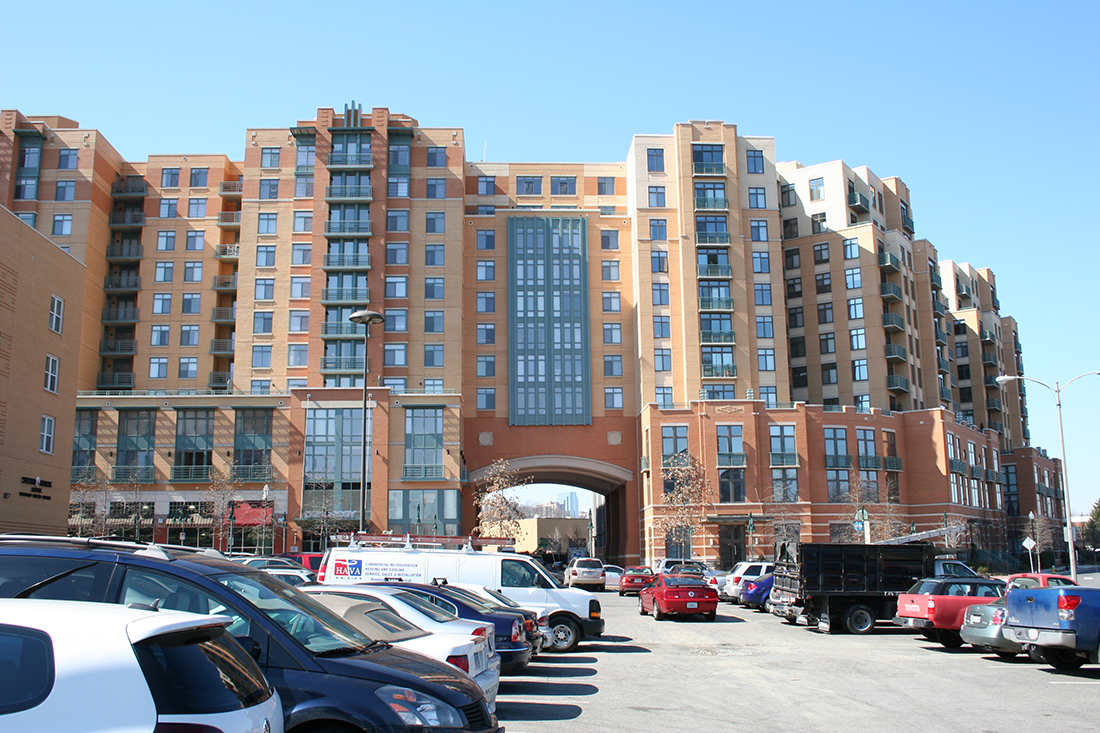 Considered the arts and entertainment district of Arlington, Shirlington is the home of the stylish Shirlington Village Condominiums, built in 2006. For this new construction project, HiRISE installed windows, terrace doors, storefront and metal panels. Particularly notable were the metal panels, which were a custom color selection to match a distinct architectural design palette.
