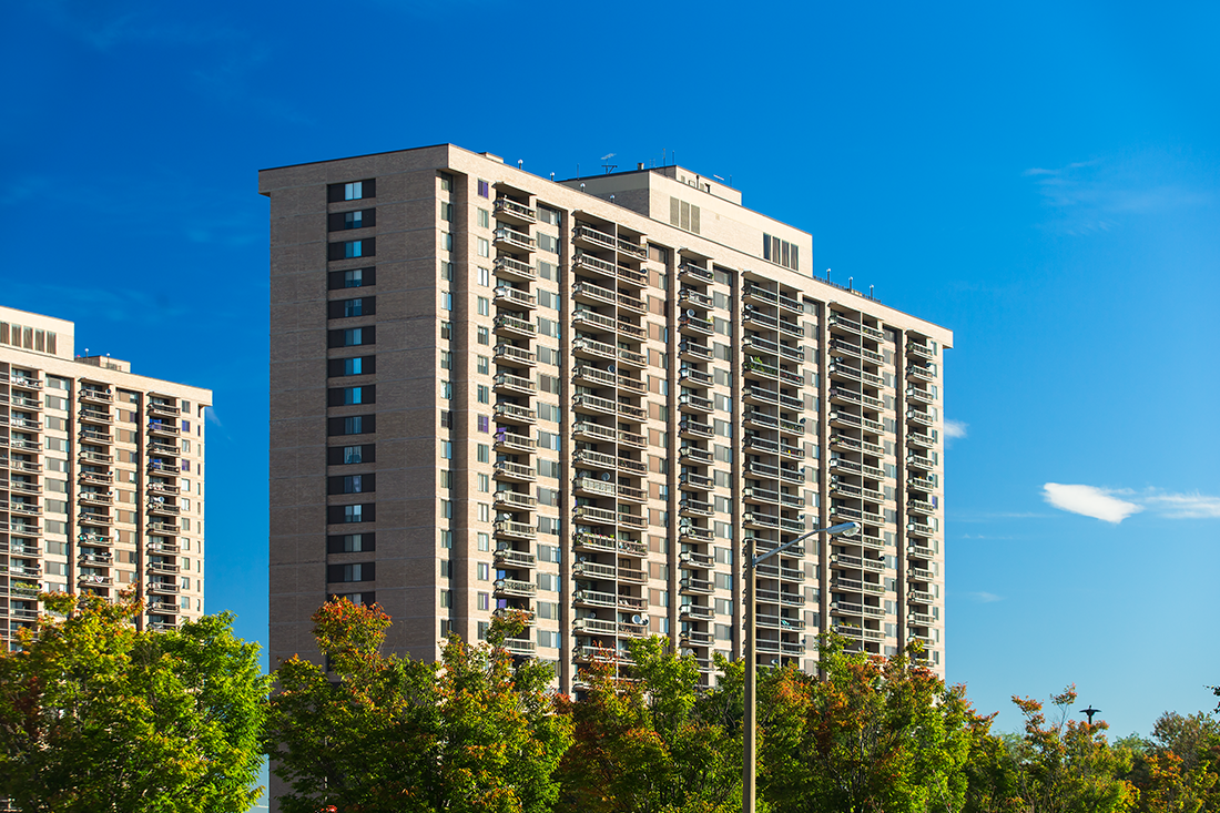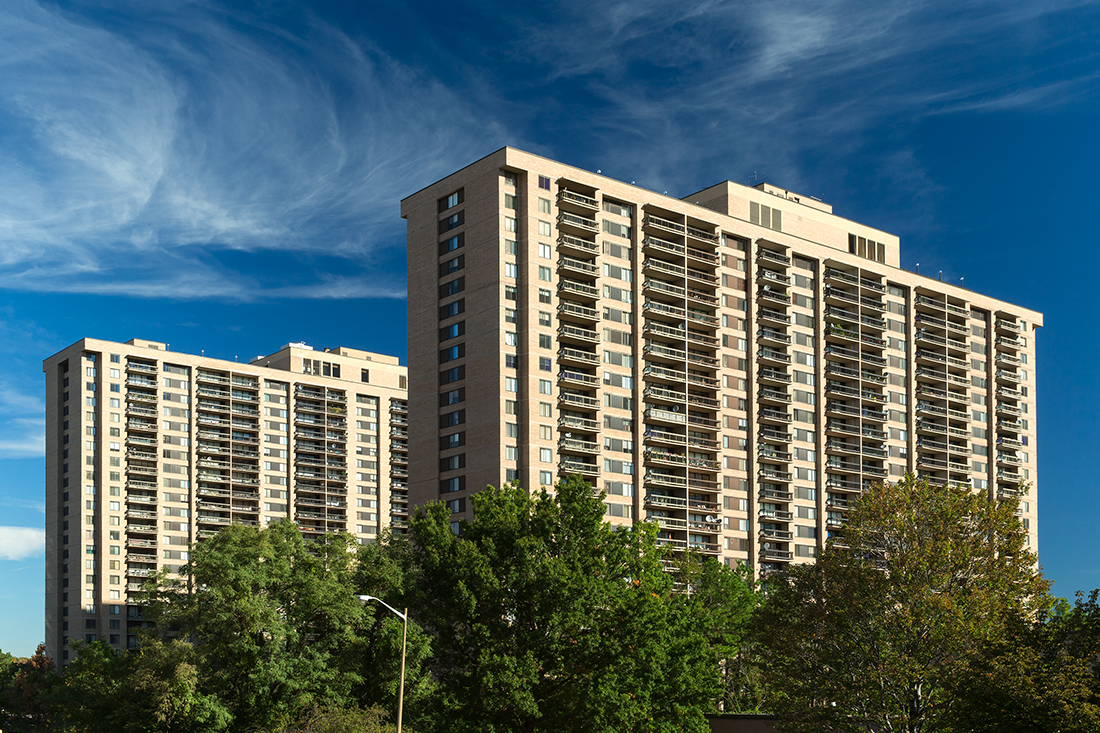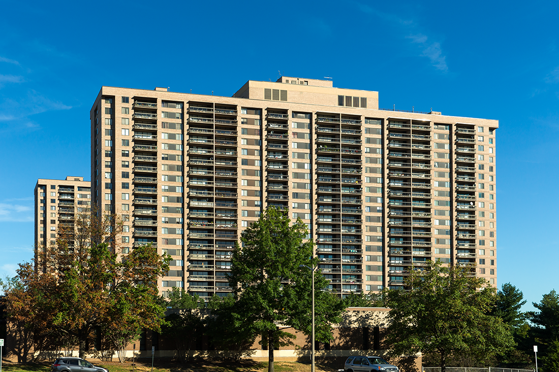 Offering both convenience and serenity, Skyline Plaza consists of two, 26-story residential towers surrounded by 10 acres of beautifully landscaped green spaces in the heart of historic Falls Church. The extensive renovation for these two buildings is being completed in four phases. HiRISE replaced the lobby storefront, and is installing terrace doors and horizontal sliding windows, provided by Thermal Windows, Inc.