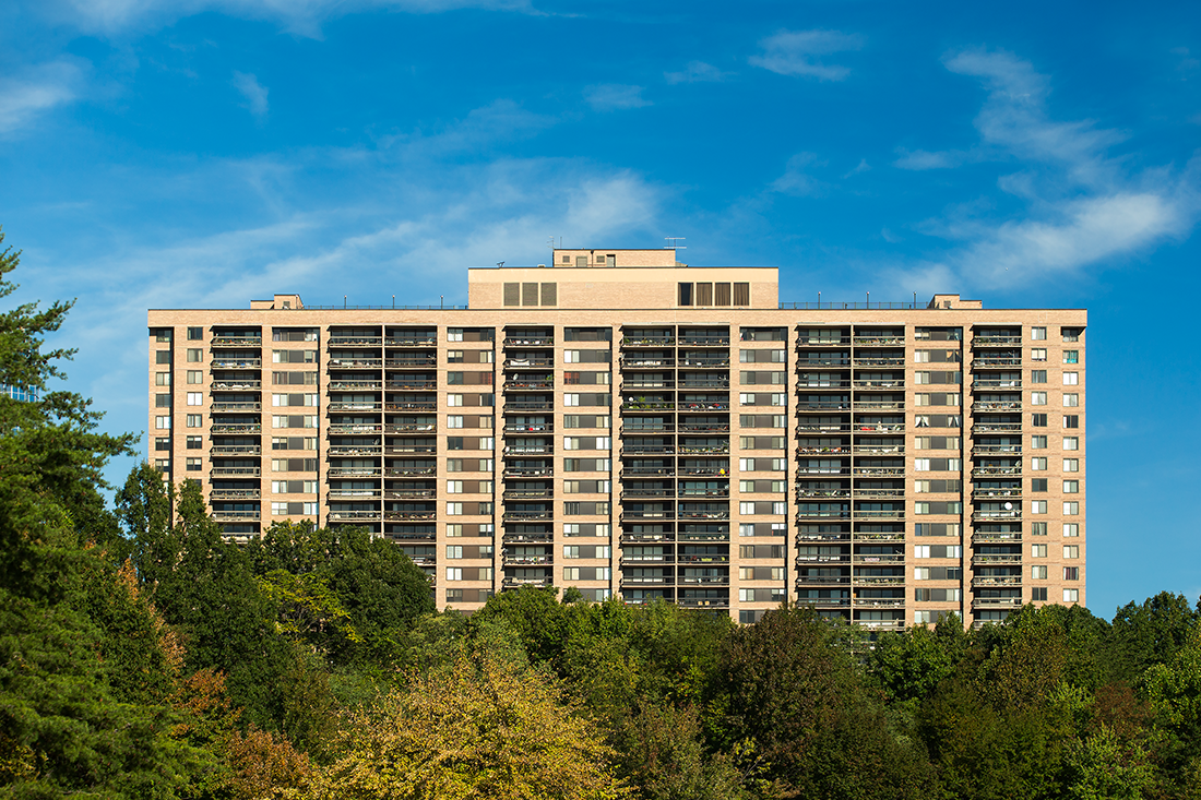 Offering both convenience and serenity, Skyline Plaza consists of two, 26-story residential towers surrounded by 10 acres of beautifully landscaped green spaces in the heart of historic Falls Church. The extensive renovation for these two buildings is being completed in four phases. HiRISE replaced the lobby storefront, and is installing terrace doors and horizontal sliding windows, provided by Thermal Windows, Inc.