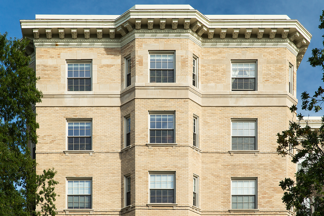 The renovation for Somerset House required meticulous craftsmanship to bring sustainability and modern conveniences to a distinct, historic mid-rise property. This lead abatement project involved the replacement of original wood windows with aluminum, energy-efficient replacements. A custom aluminum brick molding was used to match the traditional design aesthetic. The double hung windows were provided by Northern Architectural Systems.