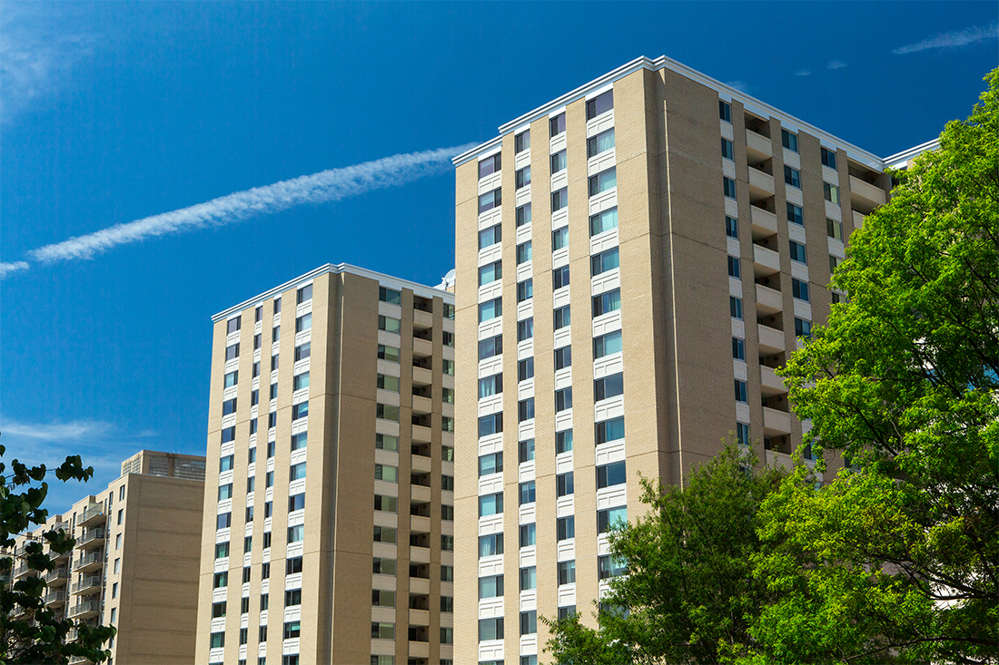 The comprehensive renovation for this 18-story high rise residential building in a prominent Chevy Chase neighborhood involved horizontal and slab-to-slab sliding windows and slab covers, as well as sliding doors. HiRISE replaced all storefront elements, contributing to an aesthetic of modern luxury in the pool, party room and commercial spaces. After selecting leading manufacturers for the project, including Northern Architectural Systems, Sunview Doors and Oldcastle Building Envelope, HiRISE handled all installations and replacements.