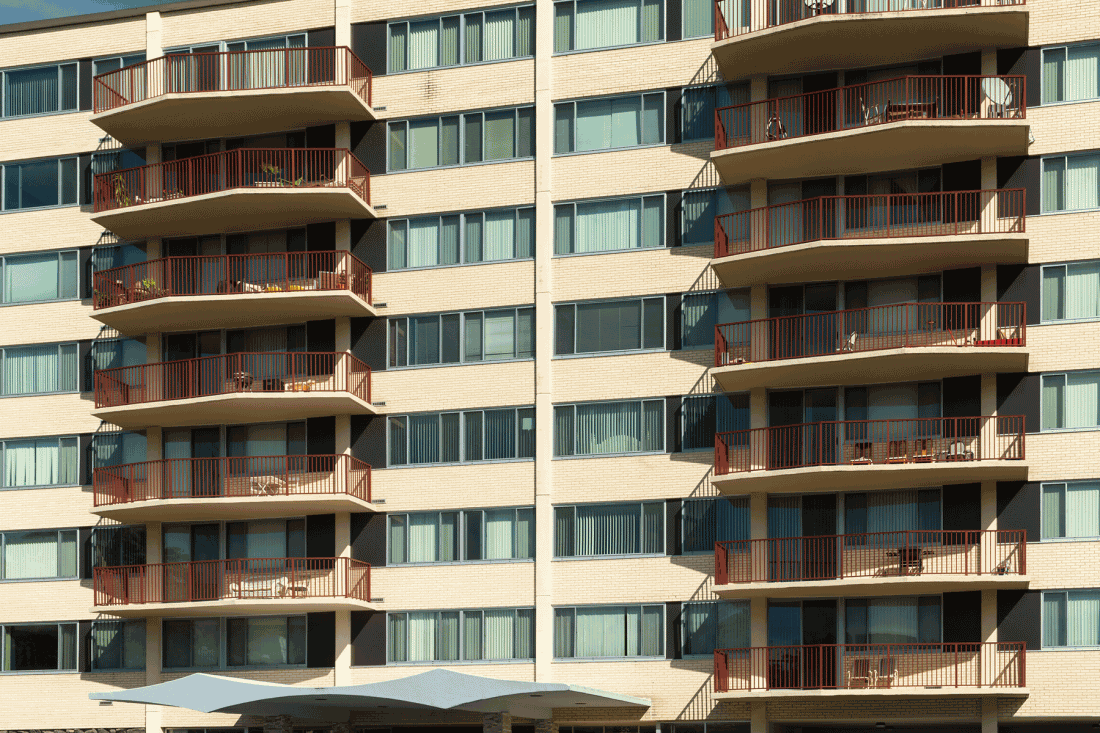 Built in 1964, The Palazzo has enjoyed many decades providing a comfortable and convenient place to call home in a busy, thriving Arlington community. For the whole-building renovation of this property, HiRISE installed new sliding doors, horizontal sliding windows, Alcoa panels, and new Alcoa windowsills.